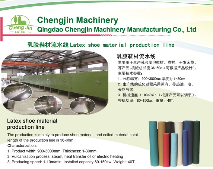 我公司生產(chǎn)的乳膠鞋材機械,乳膠鞋墊機械生產(chǎn)線采用PLC控制系統(tǒng),具有全自動,連續(xù)性,耗能低等特點,生產(chǎn)出來的乳膠鞋材質(zhì)量高。目前生產(chǎn)線已在全國多個省份開工生產(chǎn)。