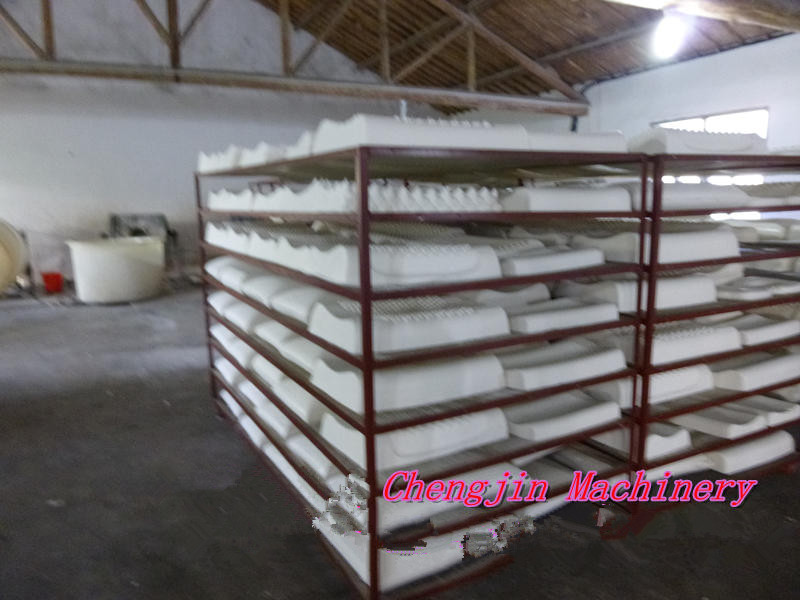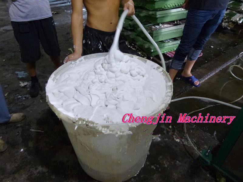 將配比好的乳膠汁機械攪拌并加入膠凝劑后放入模具,然后置于110攝氏度的蒸汽室加工(像蒸饅頭一樣哦?。?/span>