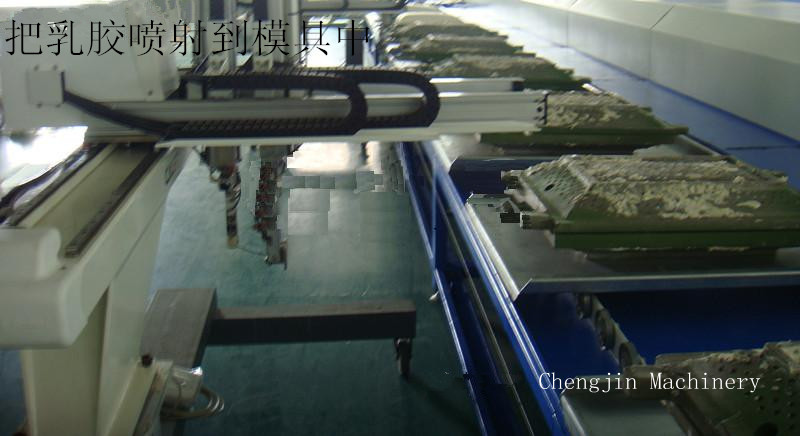 第三步:注膠。就是把乳膠噴射到模具中。這一步驟的關(guān)鍵在于操作工人是否熟練,因為噴多了會浪費,噴少了枕頭又不能成型。而且工作人員都必須佩戴頭盔,是為了防止乳膠被濺到頭上和眼睛里。