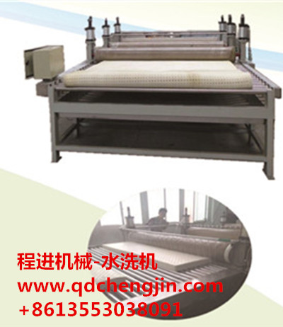 水洗機別名叫清洗擠干機,乳膠枕頭和乳膠床墊從硫化出來要經(jīng)過水洗,經(jīng)過兩次沖刷,一次擠干,可以把產(chǎn)品中的殘留發(fā)泡填充劑清洗干凈,擠壓后產(chǎn)品剩余水分很少,有利于快速烘干!水洗是乳膠產(chǎn)品生產(chǎn)過程中一個必須環(huán)節(jié),關(guān)系著產(chǎn)品的質(zhì)量。