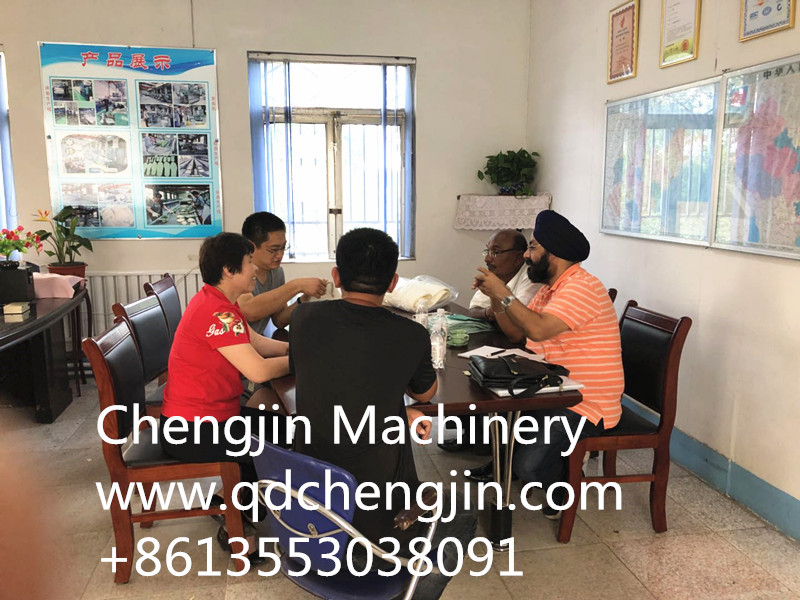 印度客戶專程從印度飛往青島來我公司驗(yàn)收乳膠鞋材生產(chǎn)線,經(jīng)理和技術(shù)人員給客戶詳細(xì)講解了生產(chǎn)線的整個(gè)過程,